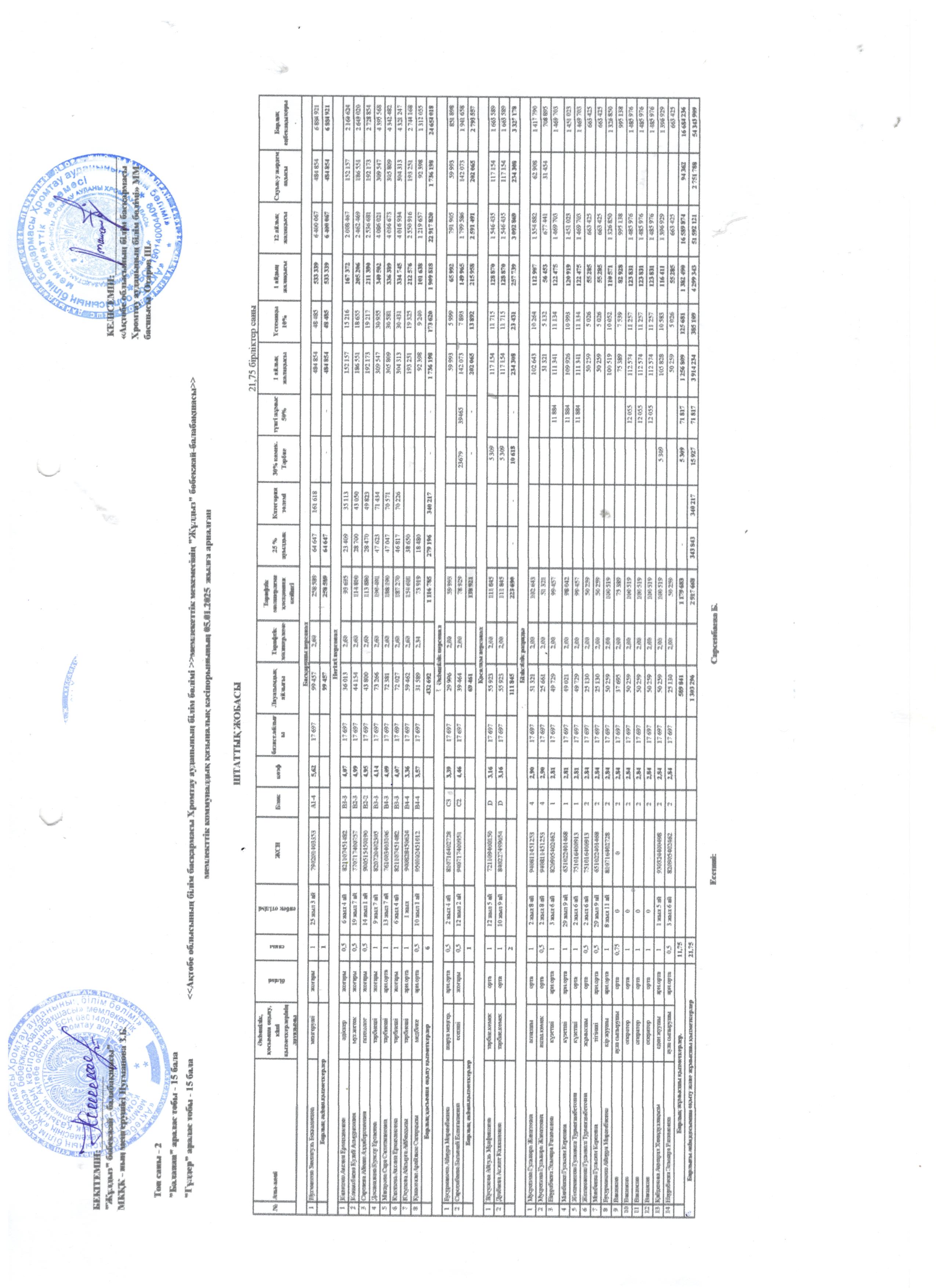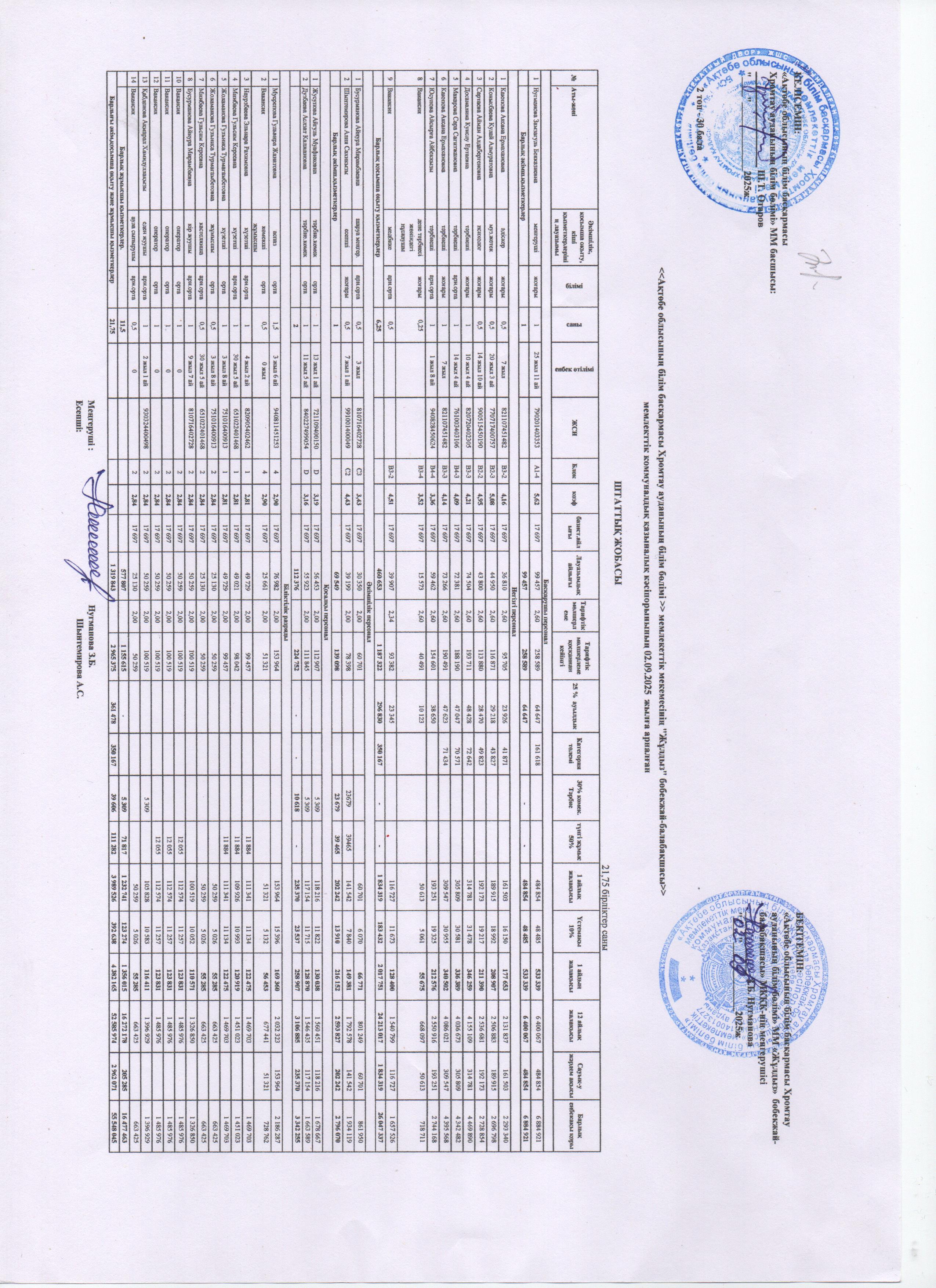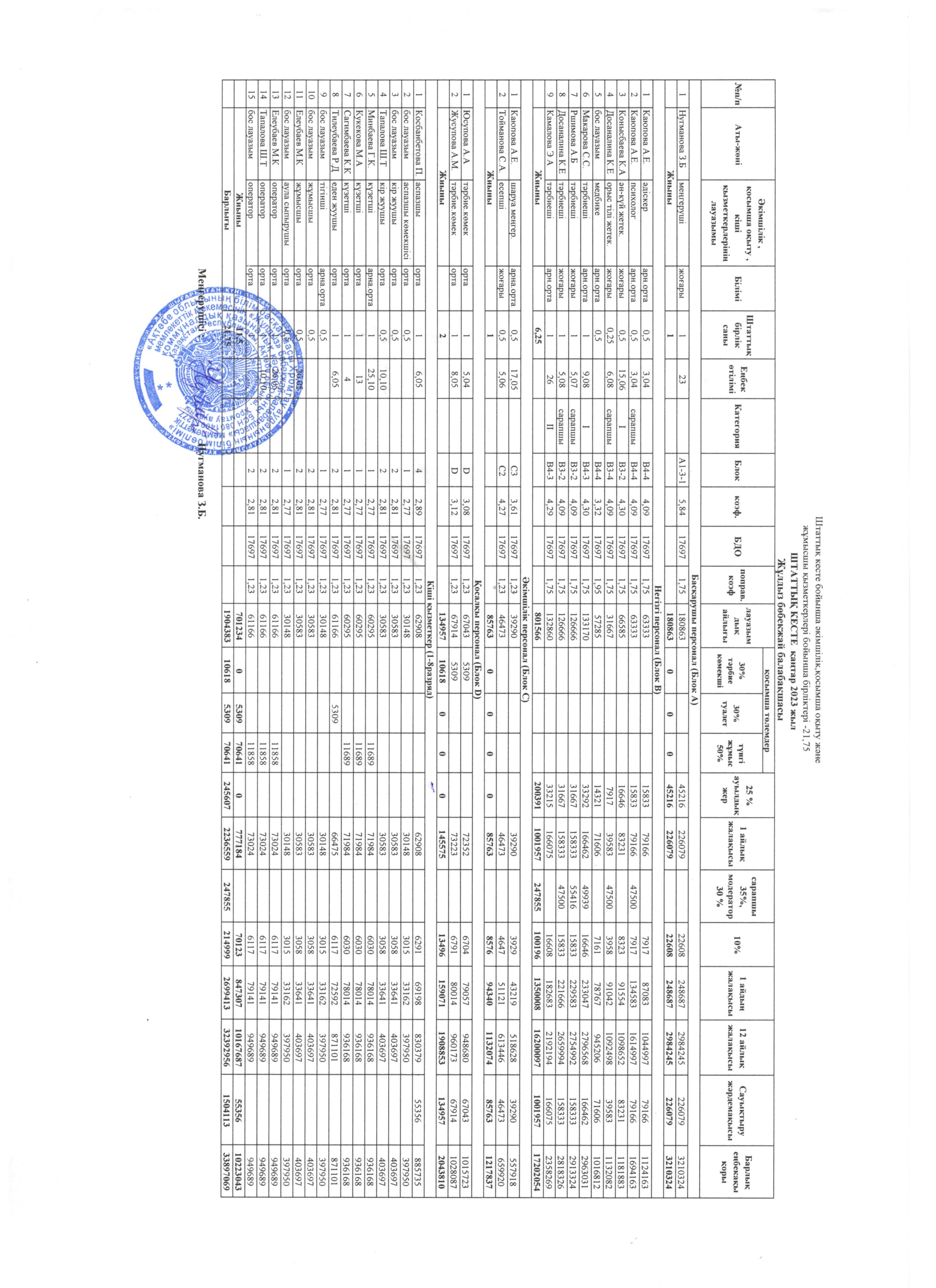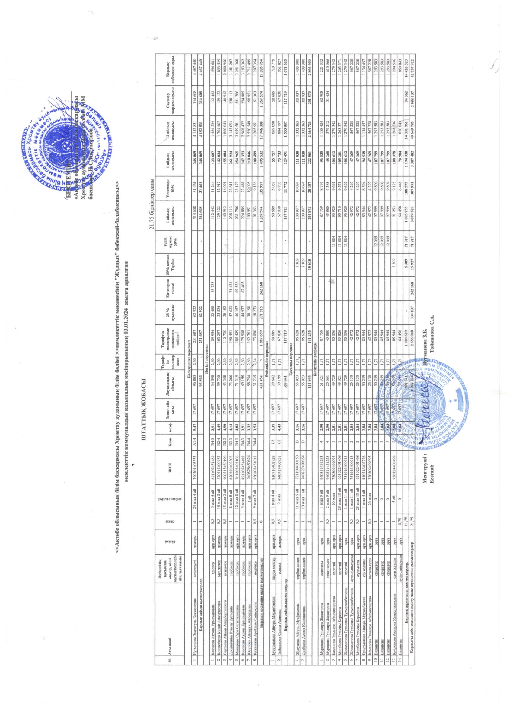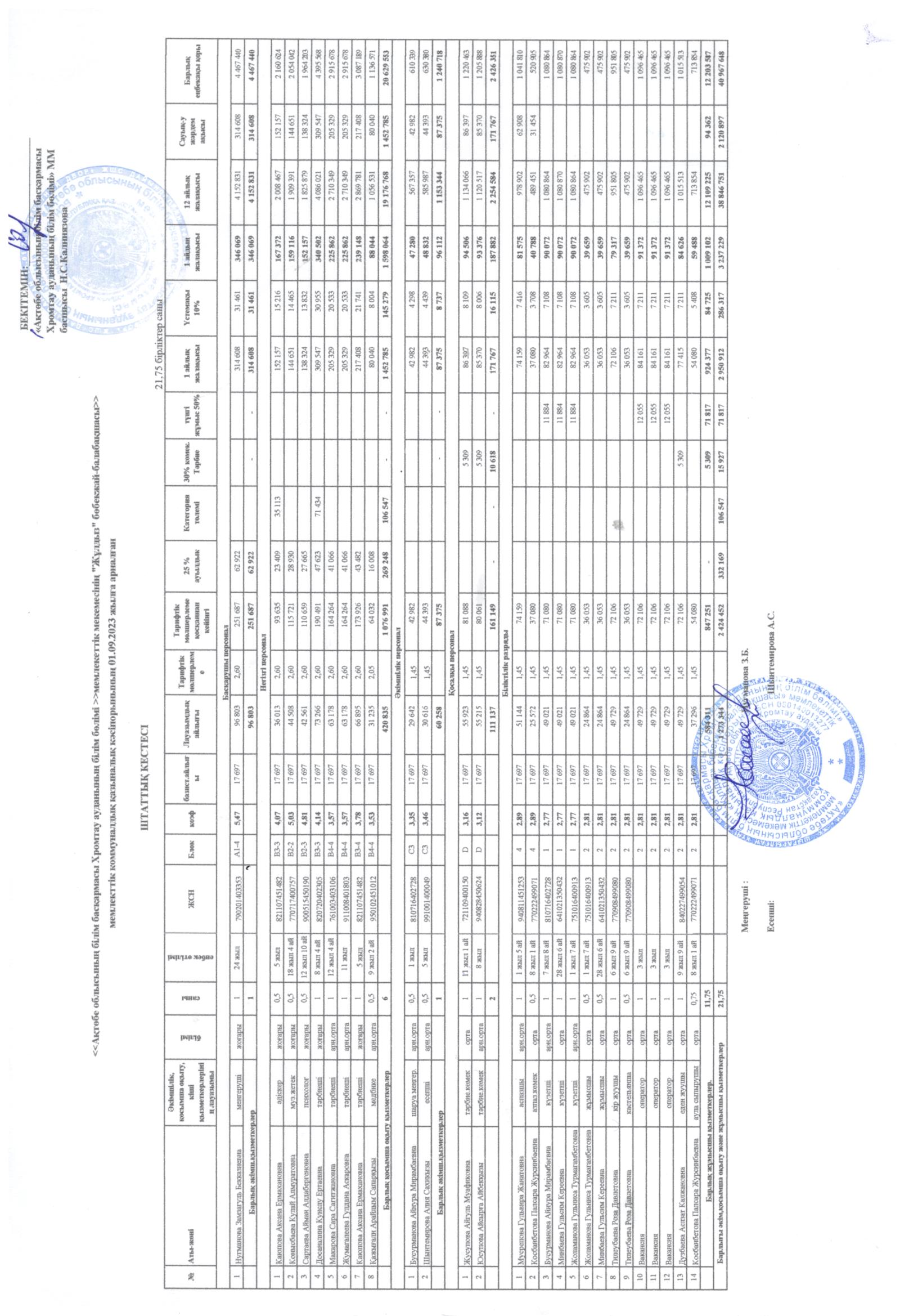 Штаттық кесте